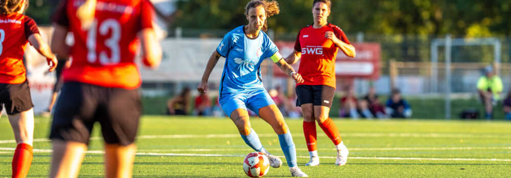 Hatte Bornheim in den Anfangsminuten noch leichte Probleme ins Spiel zu finden, konnte das Team rund um Kapitänin Luana Balzer aber bald seine Anfangsnervosität ablegen. Mit zunehmender Spielzeit arbeitete sich Bornheim immer besser ins Match und erspielte sich in den ersten 45 Minuten einige vielversprechende Torgelegenheiten. Zwar ging die erste gute Torchance auf das Konto des TSV Klein Linden, als ein abgefälschter Ball auf der Querlatte des Bornheimer Tores landete, doch fand die SG im weiteren Verlauf immer öfter den Weg vor das gegnerische Tor. Was fehlte, war die letzte Konsequenz und Entschlossenheit im Abschluss, so dass die Chancenverwertung auch weiterhin ein zentrales Thema blieb.